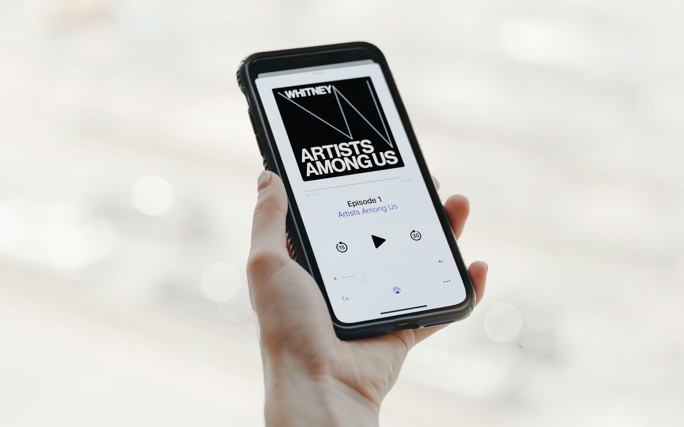 Identity and animation for the first-ever podcast by the Whitney Museum of American Art, highlighting the voices of artists past and present and narrated by Carrie Mae Weems. Extending the philosophy of the “Responsive W” that underpins the Whitney’s overall graphic identity, we created a waveform-inspired shape that reacts to a speaker's voice. Photo by Ryan Lowry.
